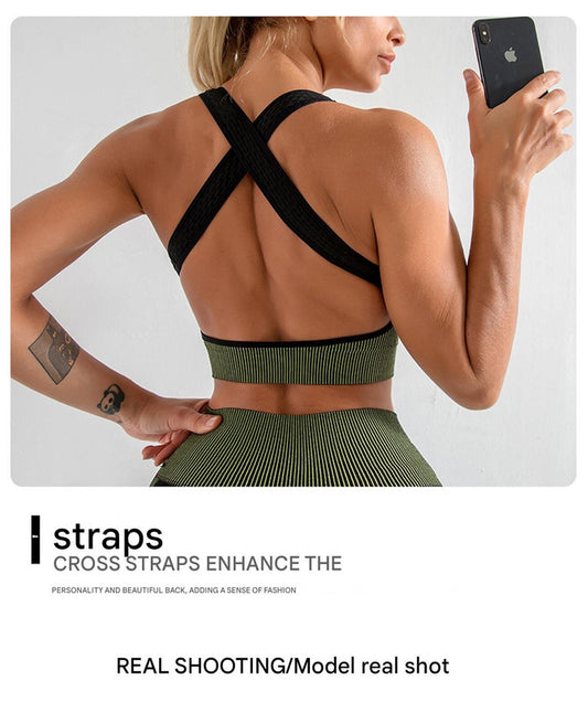 Army Green High Waist Yoga Set for Women - Sports Bra, Long Sleeve Shirt & Leggings 3-Piece Workout Set Size XXXL