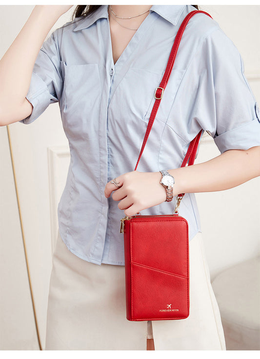 Red RFID Blocking Passport Wallet - Multi-Function Travel Organizer with Double Zipper and Crossbody Strap