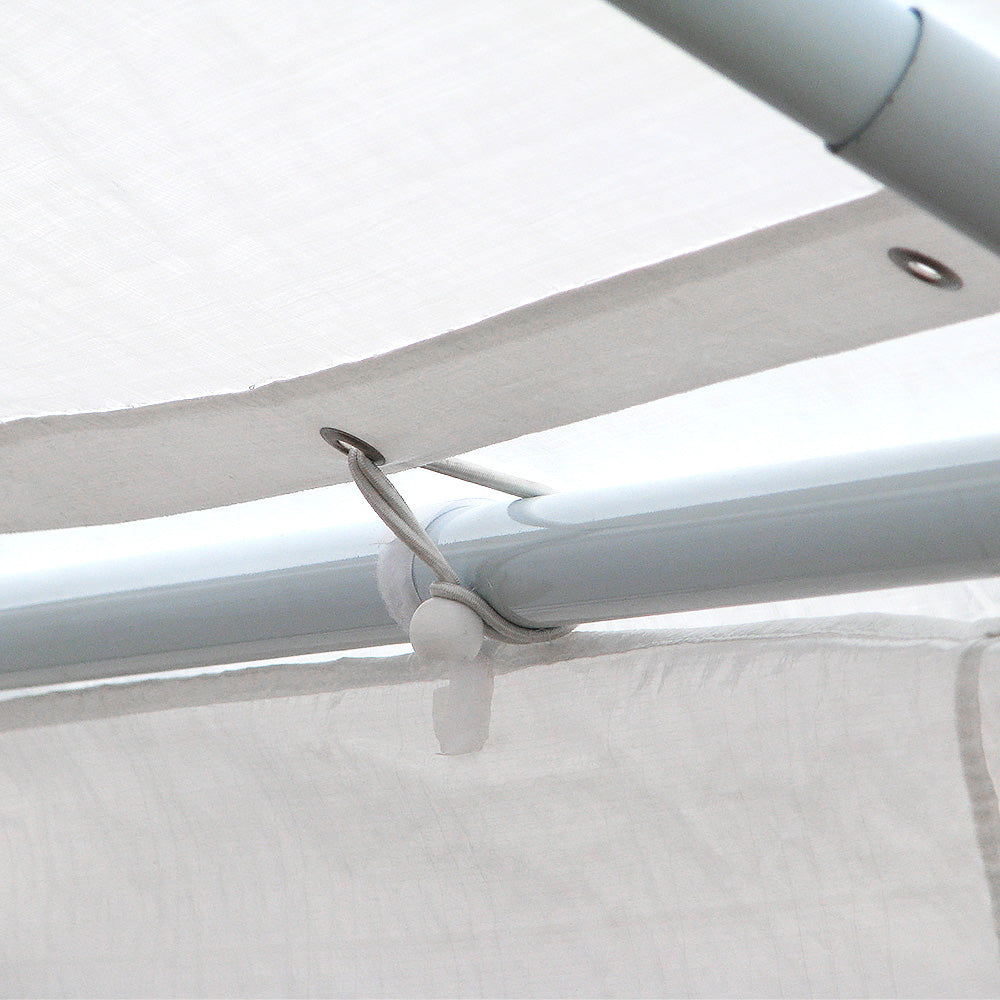 Due to the size of this item it is not possible to determine the type of fixing that may be required in all circumstances and uses. It is important for the user to determine how and where the item is used and to be aware that the structure needs to be adequately secured to prevent damage to the structure and/or injury to people due to wind. In some circumstances (eg: wind-sheltered courtyards) it may be adequate to use sandbags and light guy ropes to secure the item. The user must keep in mind that this item has a large surface area and may need to be guyed down to other fixed structures, heavy sandbags, or a combination of both to prevent damage from wind. The adequate measures required to secure the structure under the circumstances of its use are left to the user to decide.